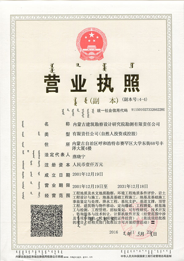 - 內(nèi)蒙古建筑勘察設(shè)計(jì)研究院勘測(cè)有限責(zé)任公司,是全國(guó)首家完成 轉(zhuǎn)企建制的省級(jí)建筑勘察設(shè)計(jì)單位。公司前身為內(nèi)蒙古建筑勘察 設(shè)計(jì)研究院勘測(cè)分院, 成立于1954年 ,經(jīng)過(guò)六十多年的發(fā)展, 現(xiàn)已成為全區(qū)技術(shù)力量雄厚、專業(yè)設(shè)置齊全的集巖土工程勘察 、 設(shè)計(jì)、治理、檢測(cè)、監(jiān)理、咨詢、水文地質(zhì)勘查、工程測(cè)量、科 研為一體的綜合性企業(yè) ... ... [查看詳情]