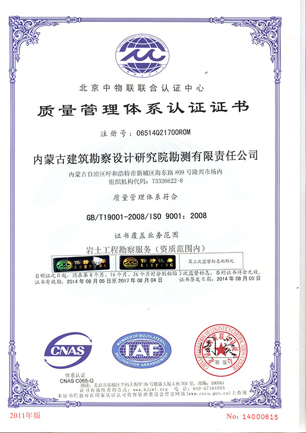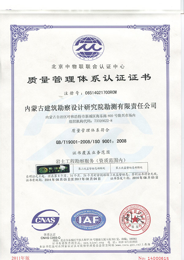 質(zhì)量管理體系認(rèn)證證書(shū)