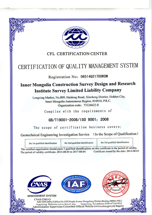 質(zhì)量管理體系認(rèn)證證書(shū)英文