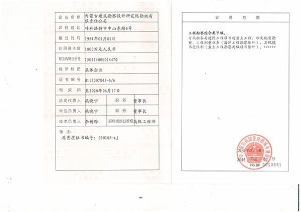 工程勘察類(lèi)甲級(jí)證書(shū)